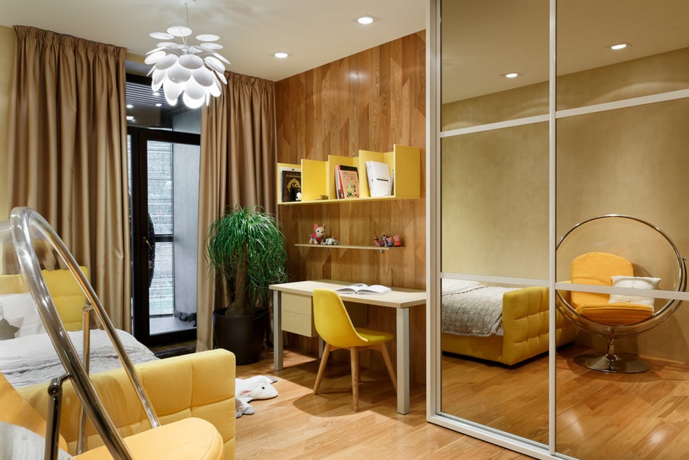 Желтый шкаф-купе безусловно понравится не каждому. Но если правильно расставить акценты, то даже такая яркая конструкция будет выглядеть уместно.