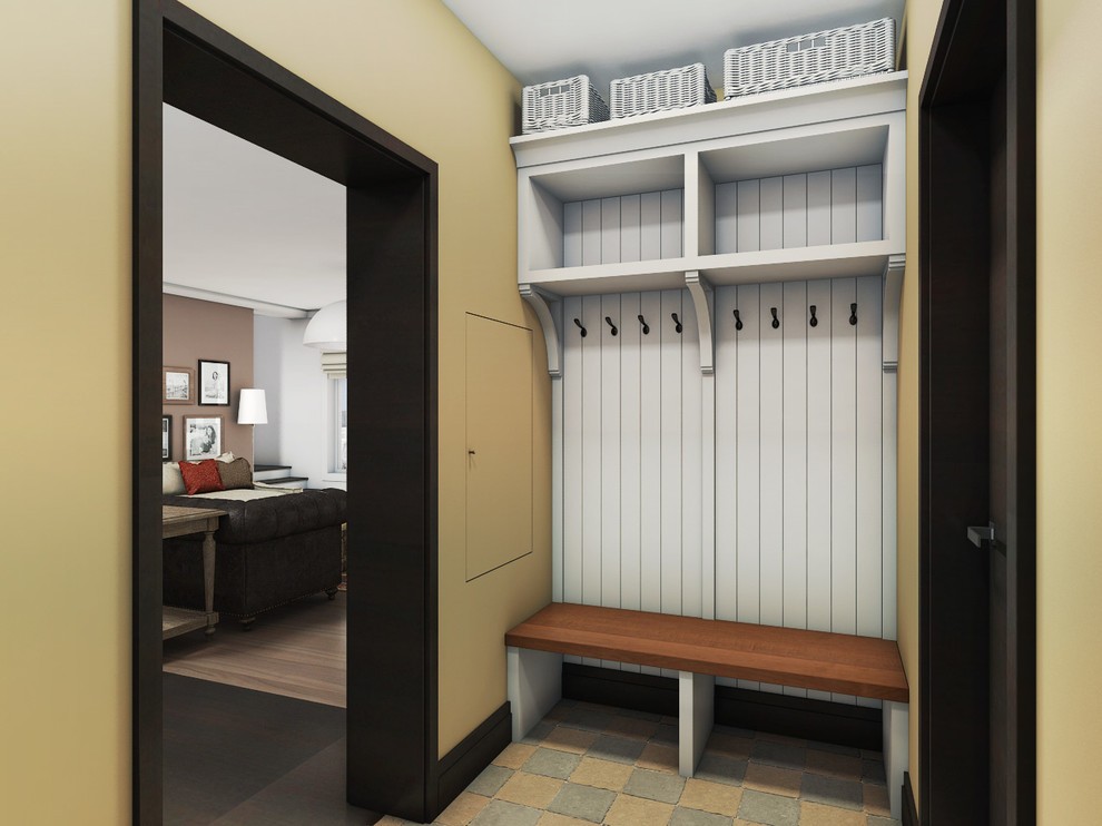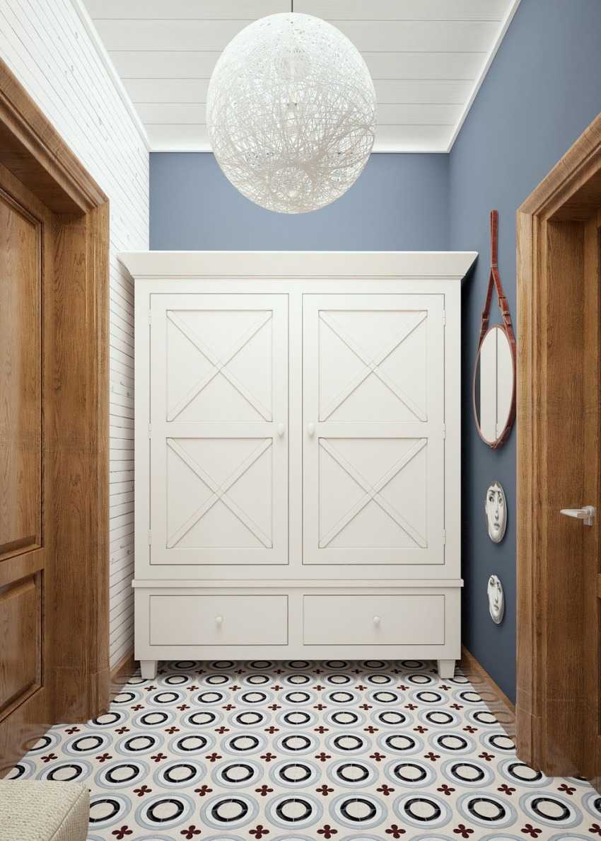Сочетание разных материалов в прихожей в стиле кантри.