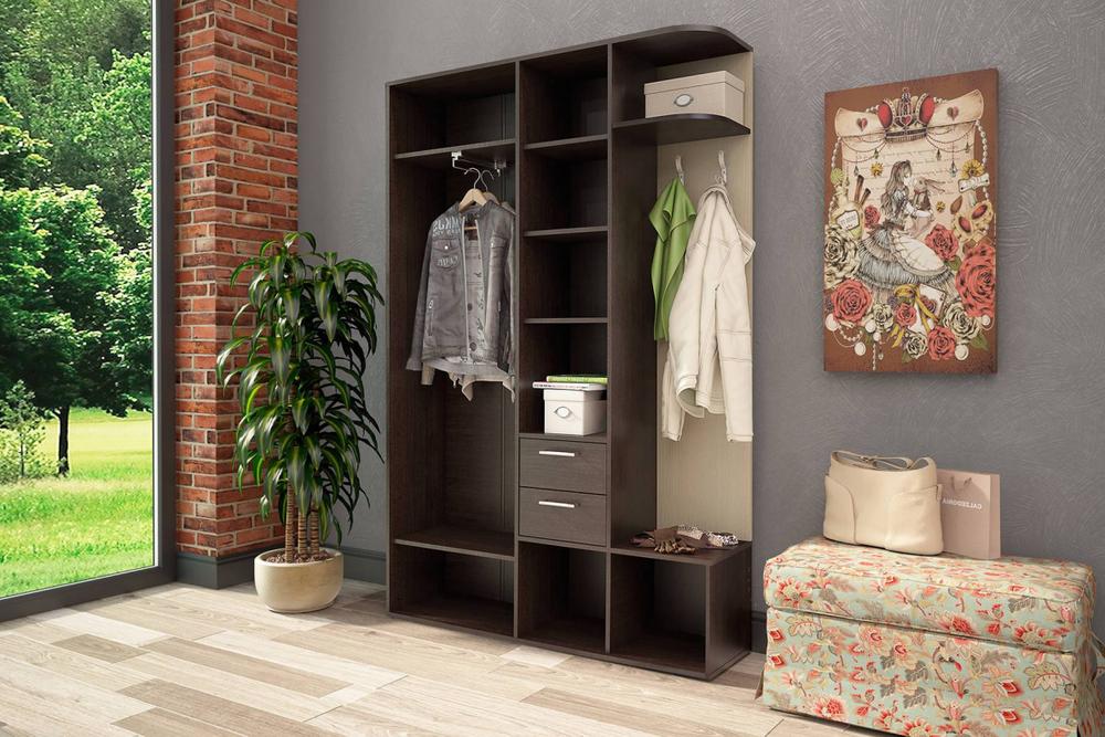 Если нет возможности установить в прихожей шкаф-купе, заменить его могут полки