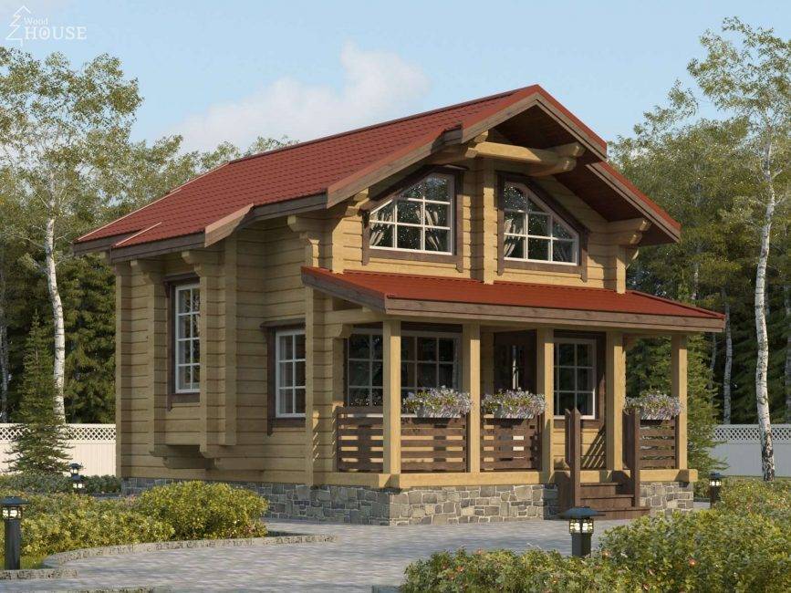 Традиционным материалом для таких построек является дерево. Проекты бань из бруса с террасой обладают множеством плюсов: