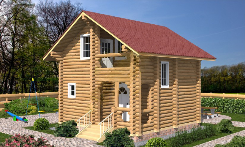 Проект двухэтажного мансардного дома из оцилиндрованного бревна