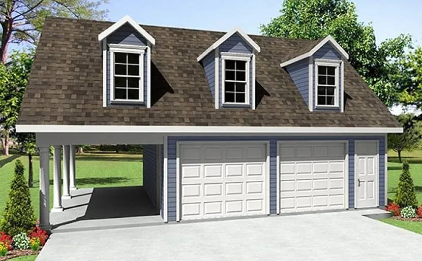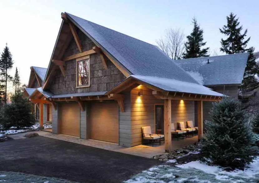 Гараж с навесом, мансардой, и отдельным входом внутрь здания Источник pinterest.com
