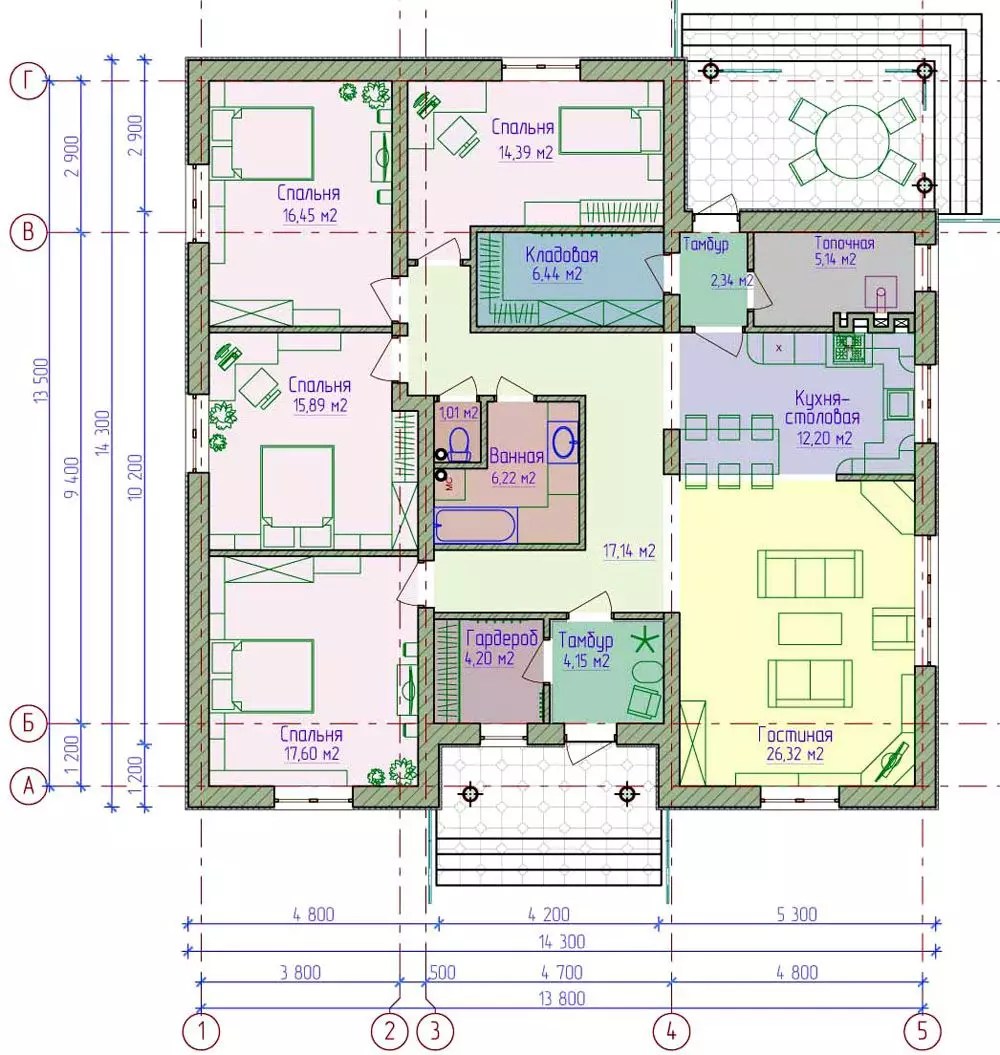 Проекты одноэтажных домов до 150 м²: фото и описание планировок