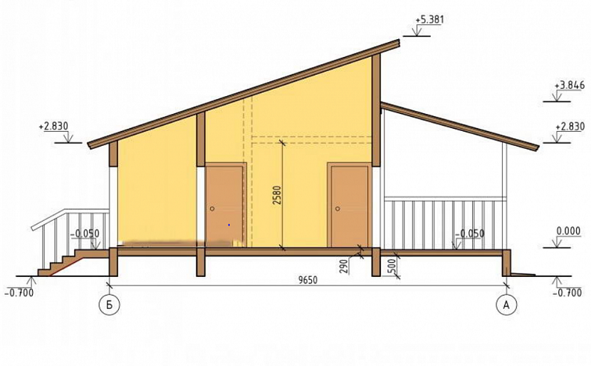 Вертикальная выполняется из основных материалов, которые применялись для постройки дома. Наклонная – выполнена из стропил и имеющейся внутренней обшивки. Их соотношение определяется проектом здания.