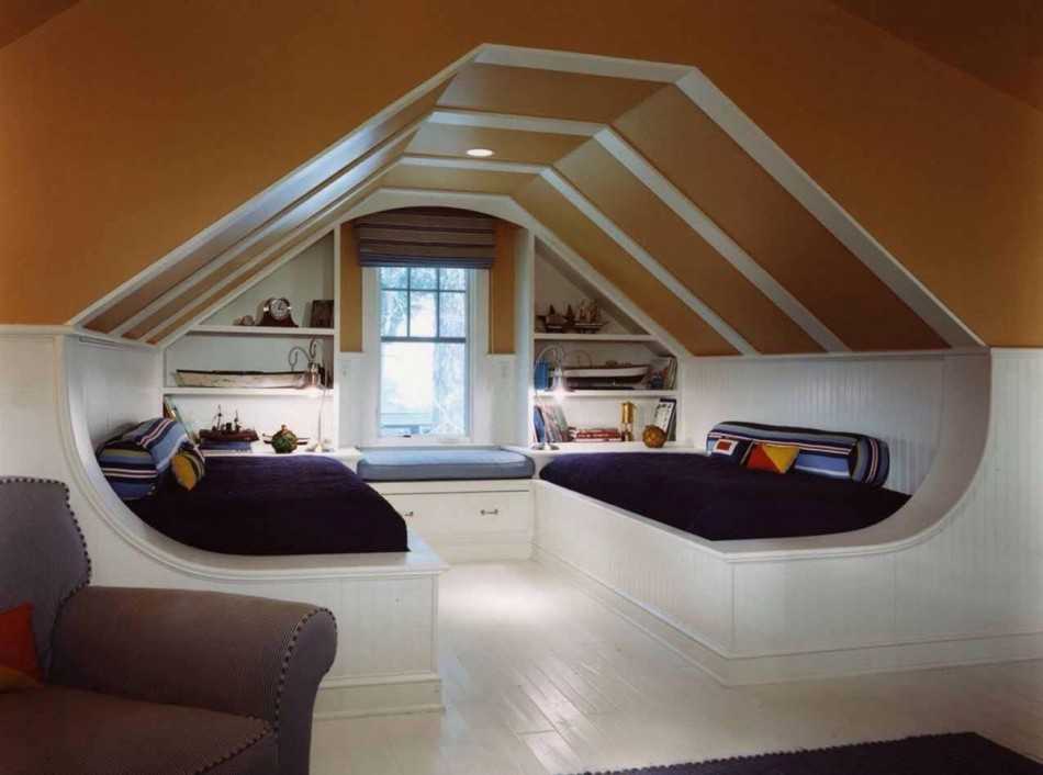 Определённые сложности возникают и при оформлении интерьера мансардных этажей. Тем более что наклонные стены могут быть не только плюсом, но и минусом. Они не позволяют расставить вдоль них мебель, наклеить обои или выполнить большинство других видов отделки. А некоторые психологи утверждают, что проживание в комнатах с расположенным под углом потолком вызывает ощущение дискомфорта.