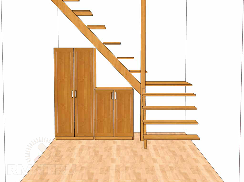 Расчет лестницы на второй этаж с поворотом на 90° с забежными ступенями