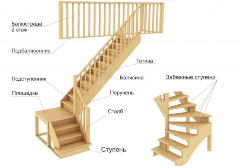 Двухмаршевая лестница, конструкция и применяемые материалы