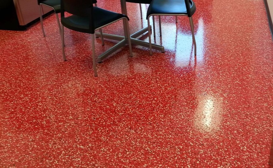 - пол с топпингом может быть выполнен в различных цветовых решениях (серый, синий, зеленый, бордовый и пр.).