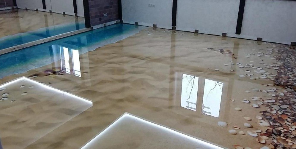 Она же используется для превращения пола в произведение искусства с рисунками и фотопечатью. Сегодня эпоксидные двухкомпонентные полы производят в виде: