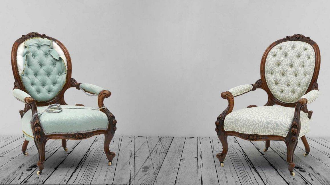 Реставрация мягкой мебели требует более осторожного подхода. Обивка удаляется очень аккуратно