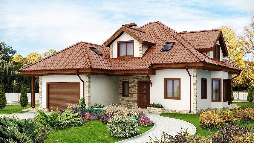 Проект одноэтажного дома с крышей из черепицы
