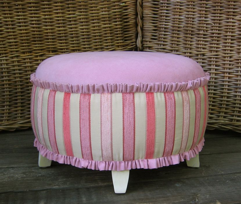 Главное, чтобы, как и пуфа, у них была съемная или открывающаяся крышка. Тогда вам понадобится всего лишь обернуть заготовку поролоном или другим мягким материалом и одеть на нее чехол.