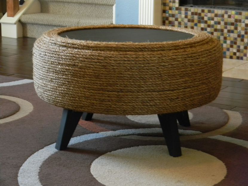 Намного удобнее использовать такой предмет мебели, чтобы присесть за низкий журнальный столик, ведь самодельный пуф можно сделать любой высоты.