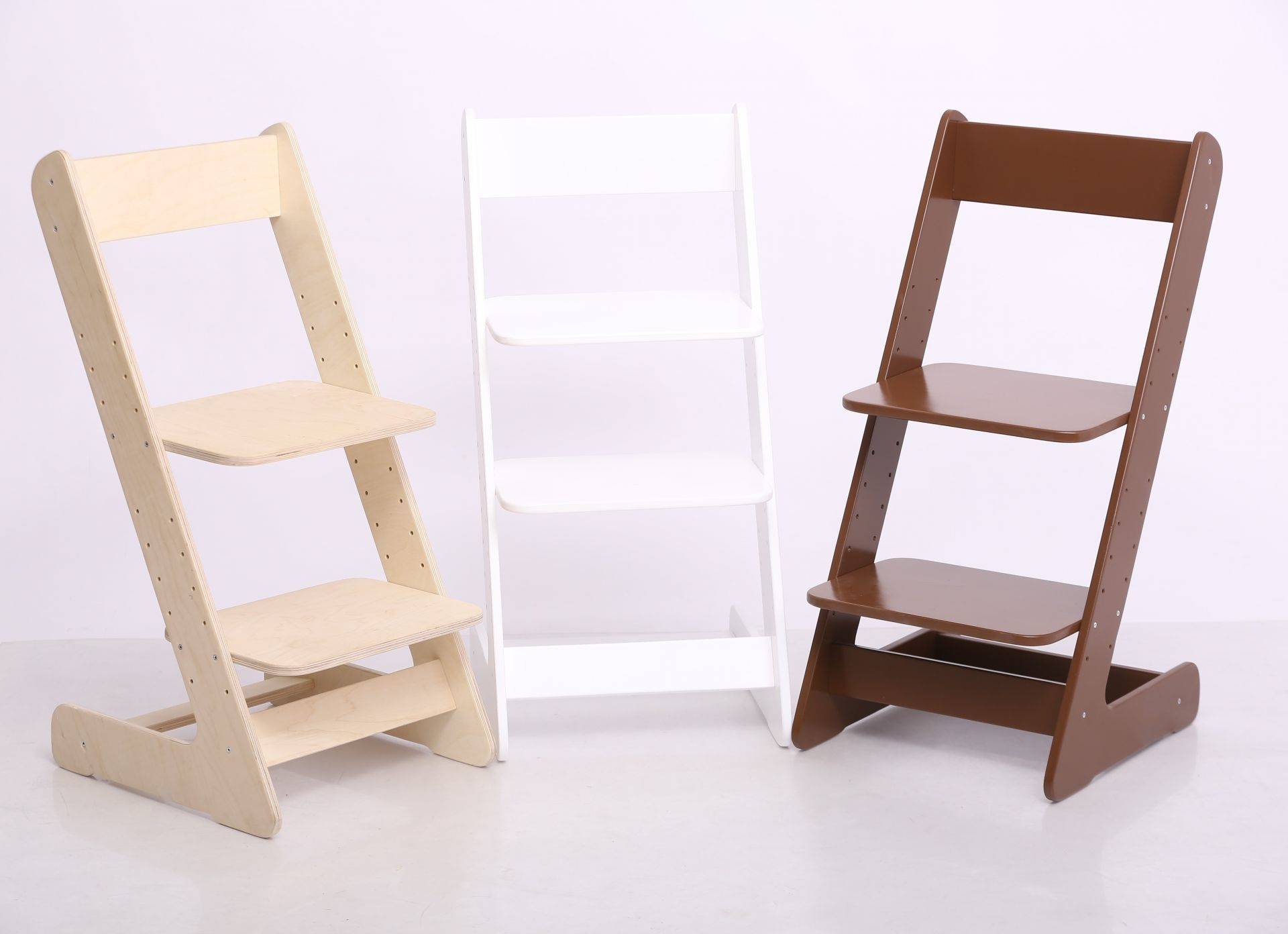 Также на рынке представлены стулья из фанеры, она, как и дерево, достаточно долговечна, однако при излишней влажности может разбухать. Пластик – это самый дешевый материал, который прослужит не так долго, как дерево, однако, позволяет прилично сэкономить. Если вы не желаете переплачивать за такое изделие и считаете покупку растущего стула нерациональной тратой денег, присмотритесь к пластиковым модификациям, которые могут стоить значительно дешевле деревянных собратьев.