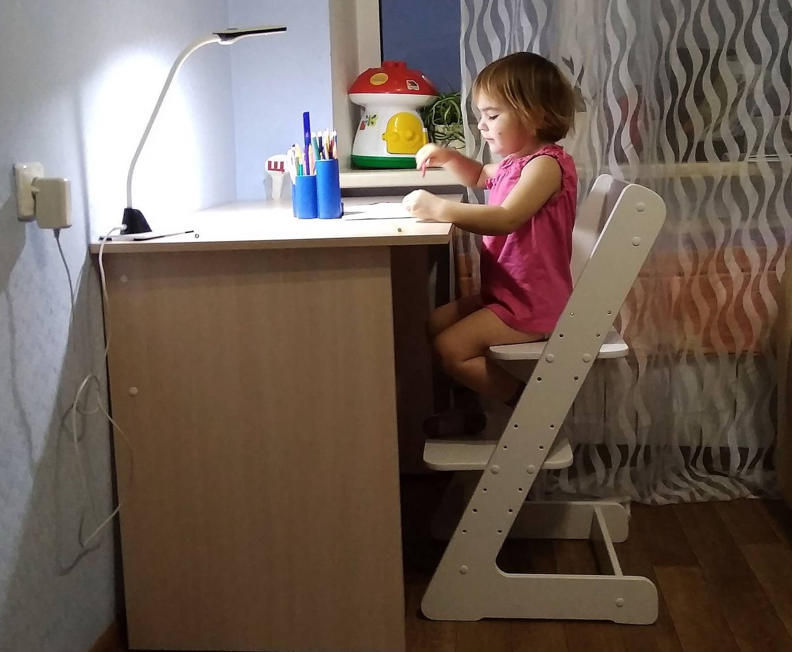 Важно подобрать такой стул, при сидении на котором у ребенка не будет возможности задвинуть ноги под сиденье и тем самым испортить себе осанку