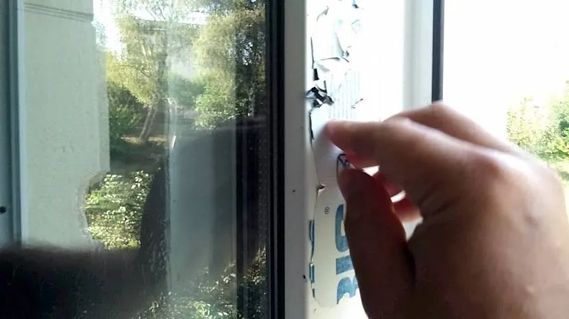 Инструкция по монтажу требует, чтобы защитную пленку сняли с окна не позднее, чем через 15 дней после монтажа. Если вы этого не сделали, а оставили на полтора года (как у меня на даче ), то лента намертво прилипнет. Легким движением убрать ее уже не получится. Потребуется растворитель.