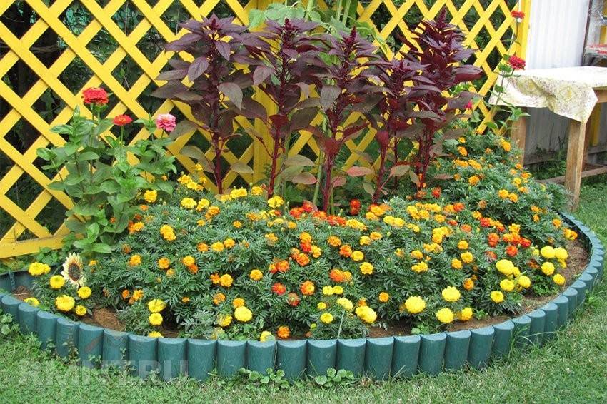 - Рекомендуется, чтобы на клумбе присутствовало хотя бы одно красиво цветущее растение.