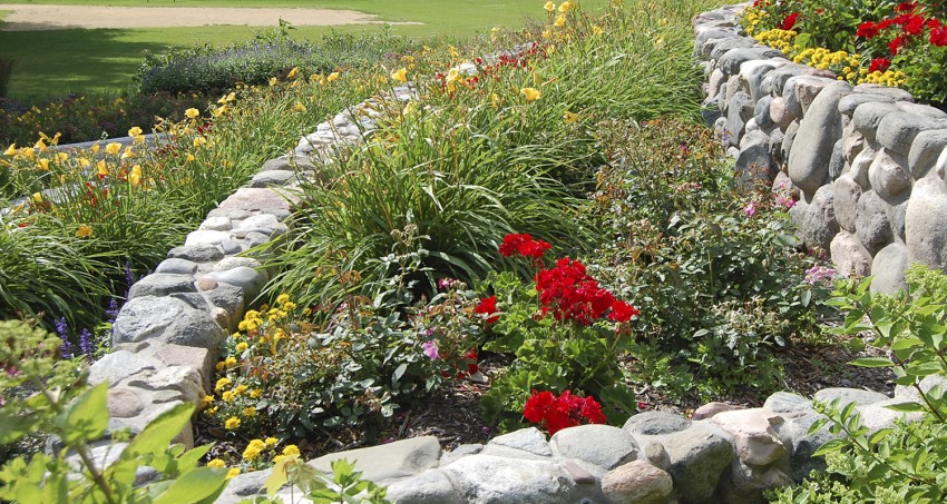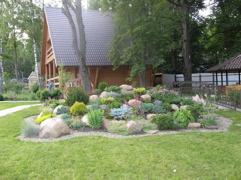 - Альпийские горки и рокарии (присутствуют камни и валуны).