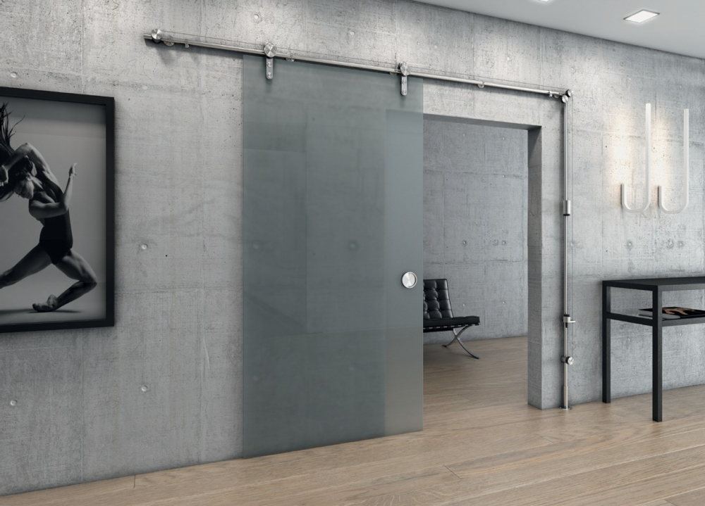 В состав дверной системы входит алюминиевый профиль и рама, роликовые механизмы и стопоры. Количество роликов выбирается индивидуально в зависимости от веса створок. Стопоры предотвращают сход дверей с направляющего рельса. К основным преимуществам откатных дверей относится: