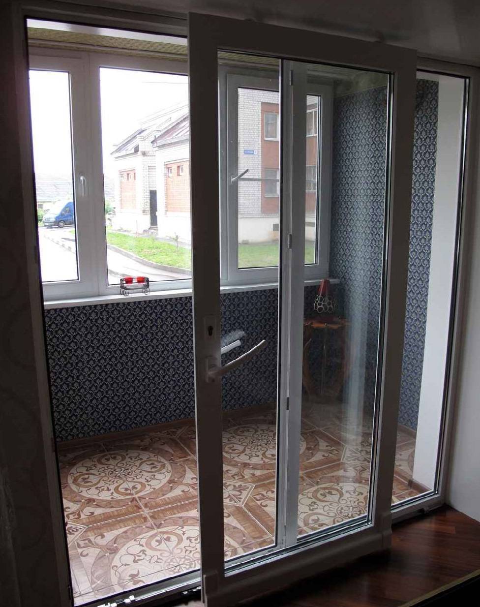 Балконная дверь ПВХ перемещается на роликах в обе стороны по специальным направляющим рельсам, обеспечивая экономно пространство для прохода на балкон. Применение такого способа не обеспечивает хорошей герметичности между балконом и помещением.