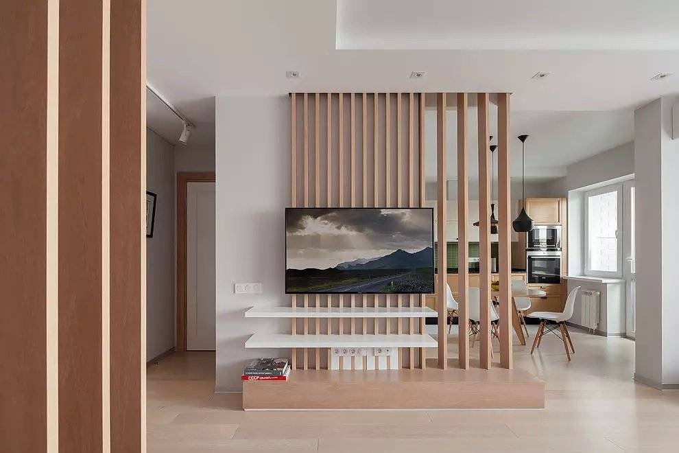На фото – перегородка в виде ширмы между кухней и гостиной.
