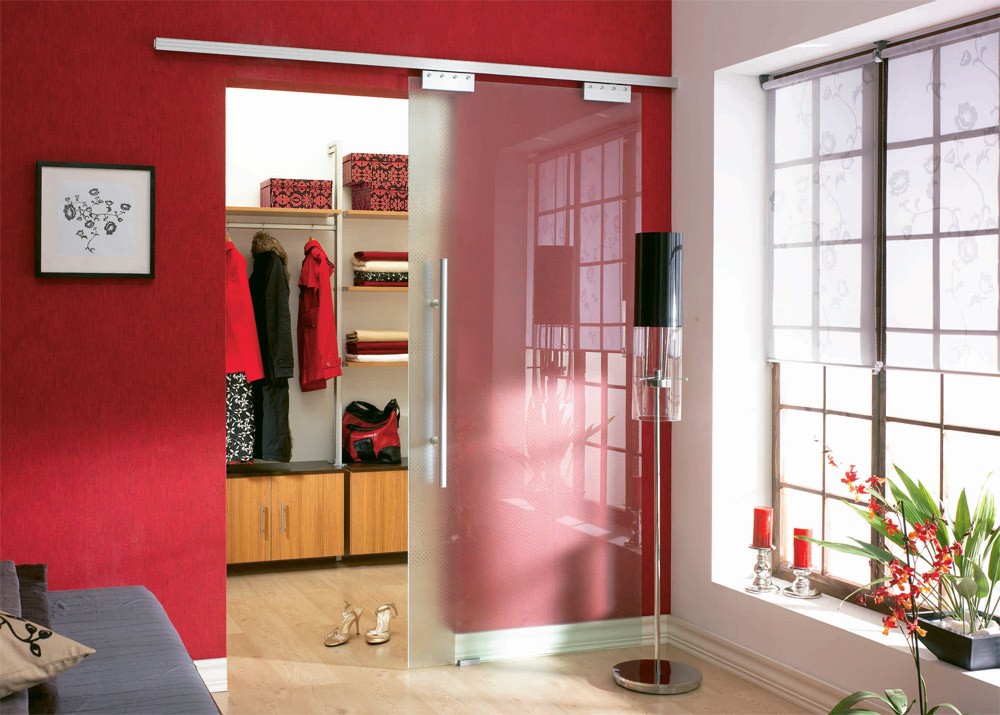 Раздвижная дверь с матовым стеклом имеет роскошный внешний вид и подойдет к практически любому интерьеру