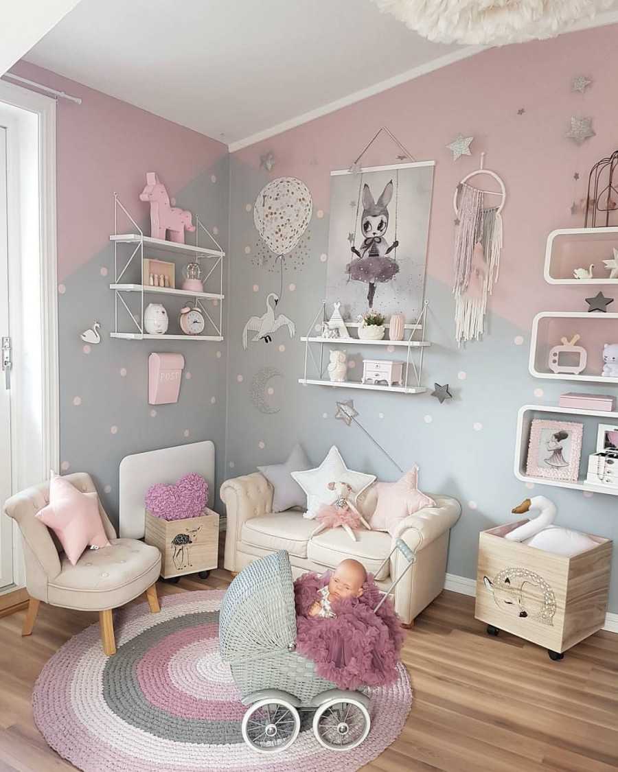 Интерьер детской комнаты для девочек чаще создается с использованием пастельных оттенков, таких как:
