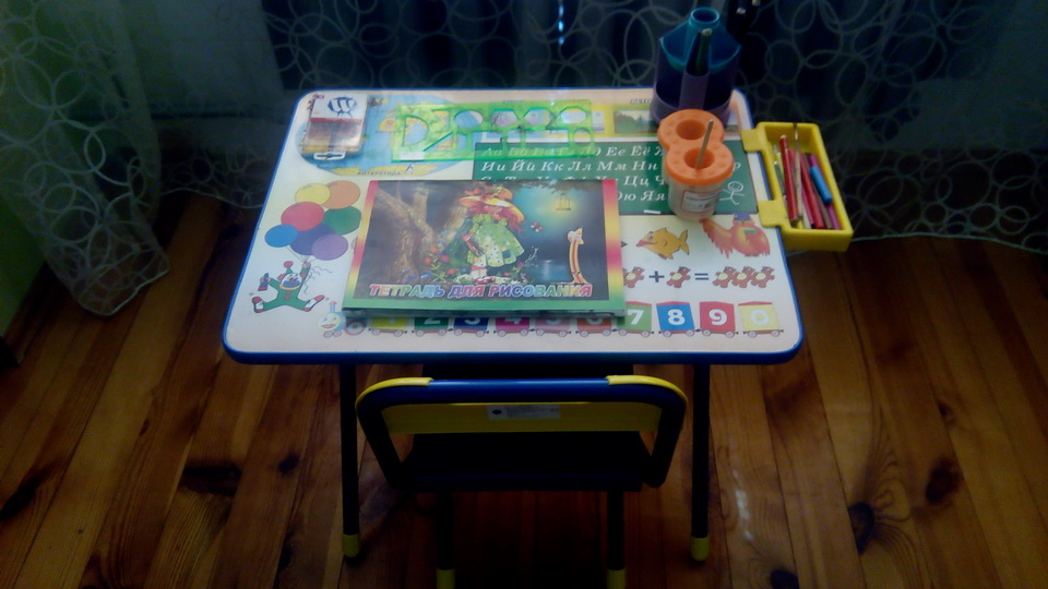 – рисует, режет, клеит. Кстати, очень удобная и полезная “штука” для 3-летнего ребёнка.
