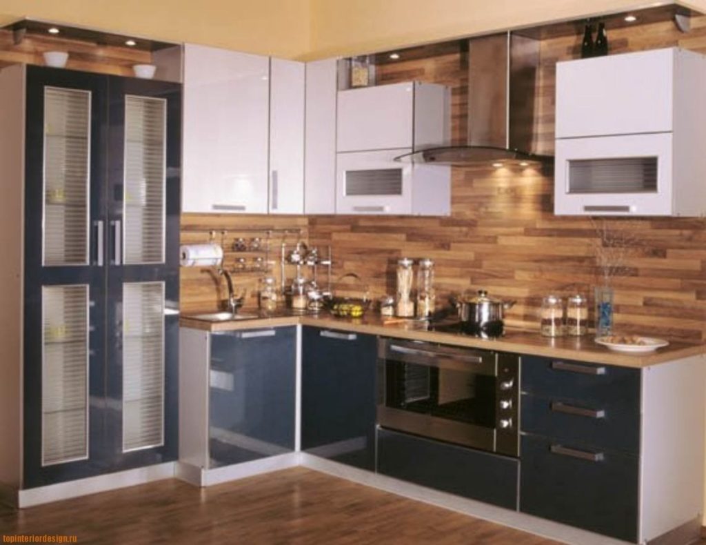 За счет блеска ламинированного ДСП визуально кухня будет казаться больше