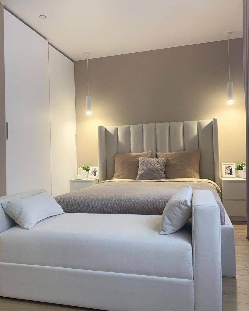 Современный дизайн спальни 12 кв. метров. Фото