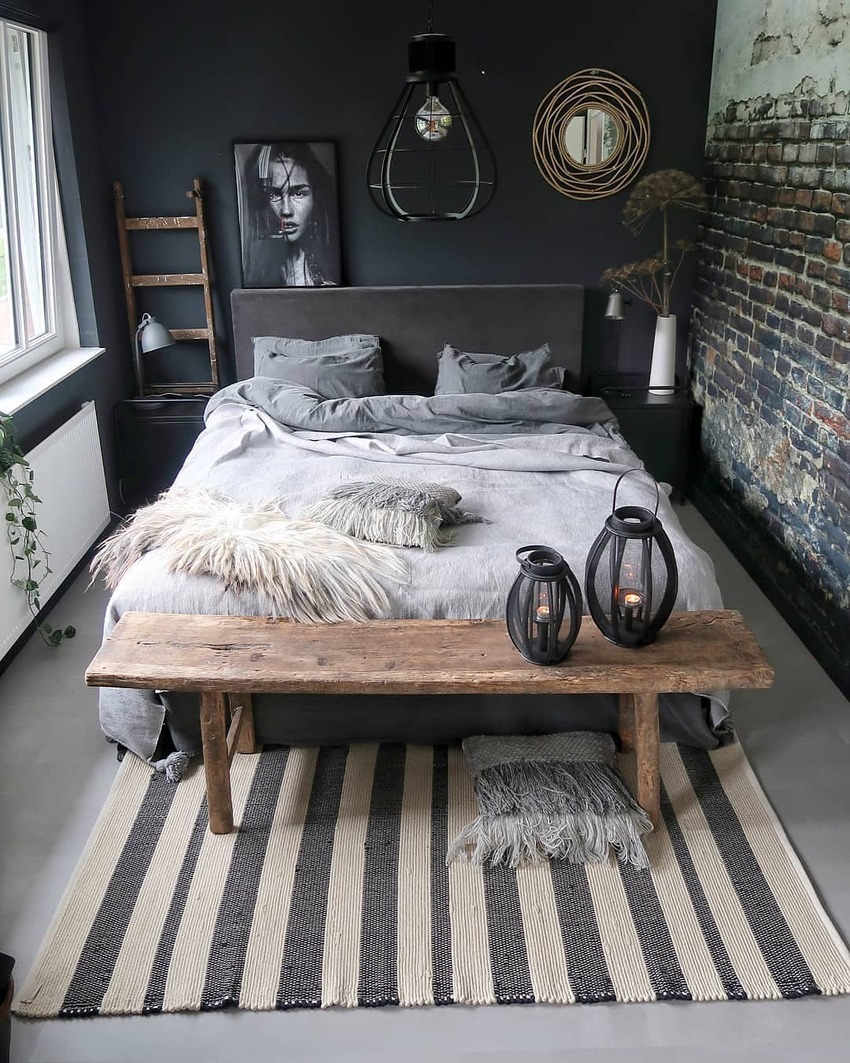 Индустриальный стиль интерьера в хрущевке понравится далеко не всем, ведь в данном случае требуется использовать много металла и бетона. Такое спальное пространство в 12 кв м будет смотреться грубовато и холодно. Хотя спальня для мальчика-подростка вполне может быть выполнена в индустриальном стиле, который будет очень уместен.