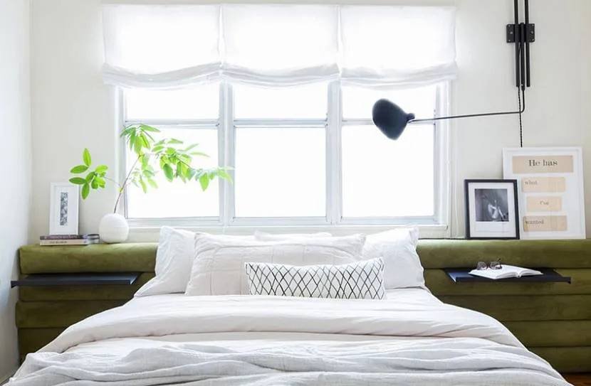 Этот вариант — отличный способ убрать из спальни все лишнее и максимально экономично распорядиться имеющимся пространством.