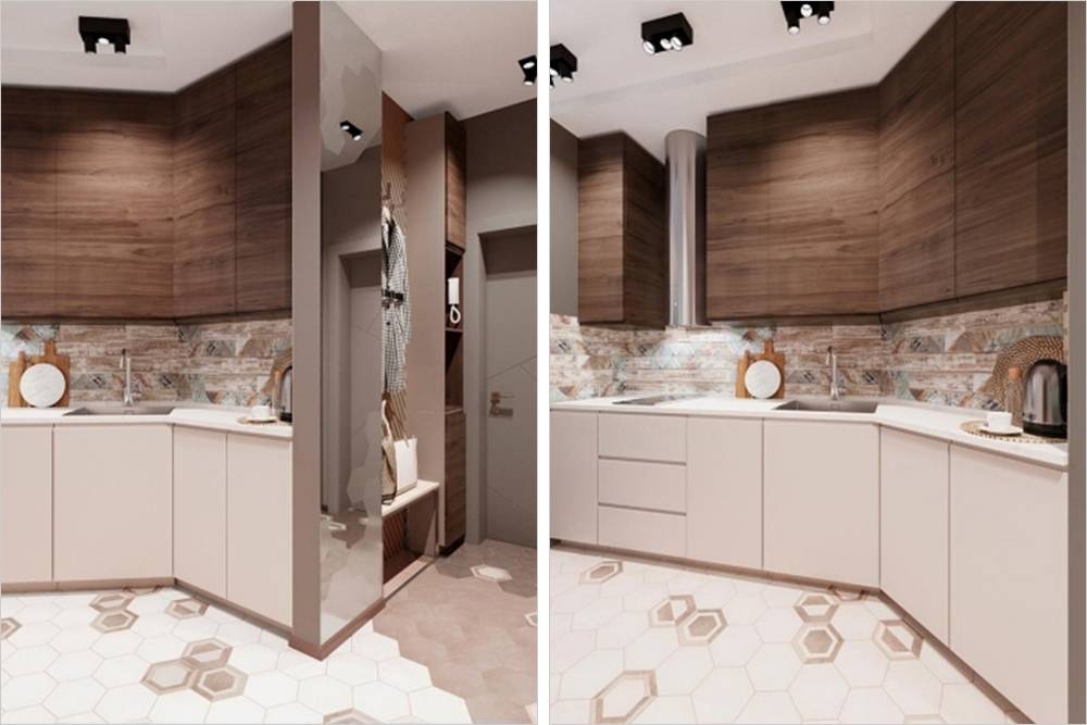 После того, как уложена плитка на стенах и полу санузла, можно переходить к кухне. Здесь так же используются водоотталкивающие материалы, и в качестве фартука можно использовать керамическую плитку или панели из стекла, ЛДСП.