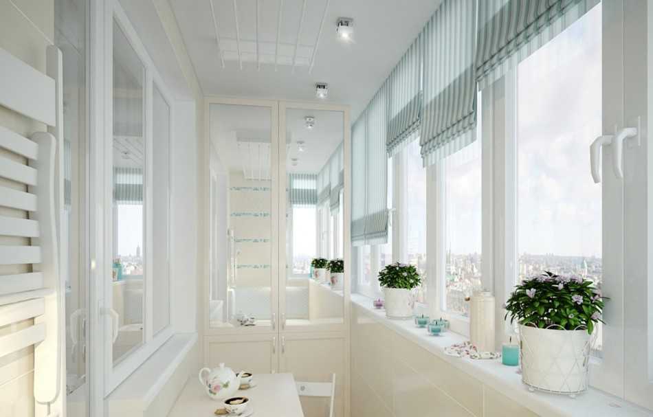 После завершения работ по укреплению, остеклению и утеплению балкона, можно приступать к внутренней отделке. Независимо от качества утепления, микроклимат на балконе достаточно изменчив. Поэтому для отделки балконов рекомендуют использовать материалы, устойчивые к перепадам температур. Это может быть покрытая лаком деревянная вагонка, пластиковые панели, керамическая плитка или влагоустойчивый гипсокартон.
