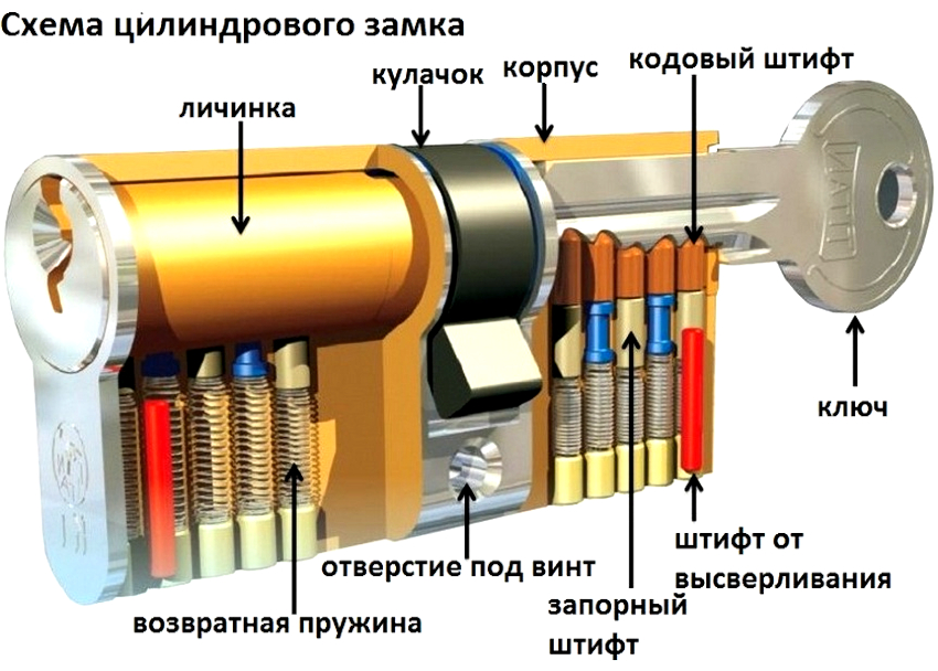 Подобное устройство включает в себя особый механизм, отвечающий за секретность. Его называют личинкой. Этот элемент является сердцевиной замка, и именно его меняют в том случае, если происходит потеря ключей. С точки зрения ремонтопригодности модели такого типа являются наиболее привлекательными. Для того чтобы починить цилиндрическое устройство, необязательно обладать специальными знаниями и навыками.