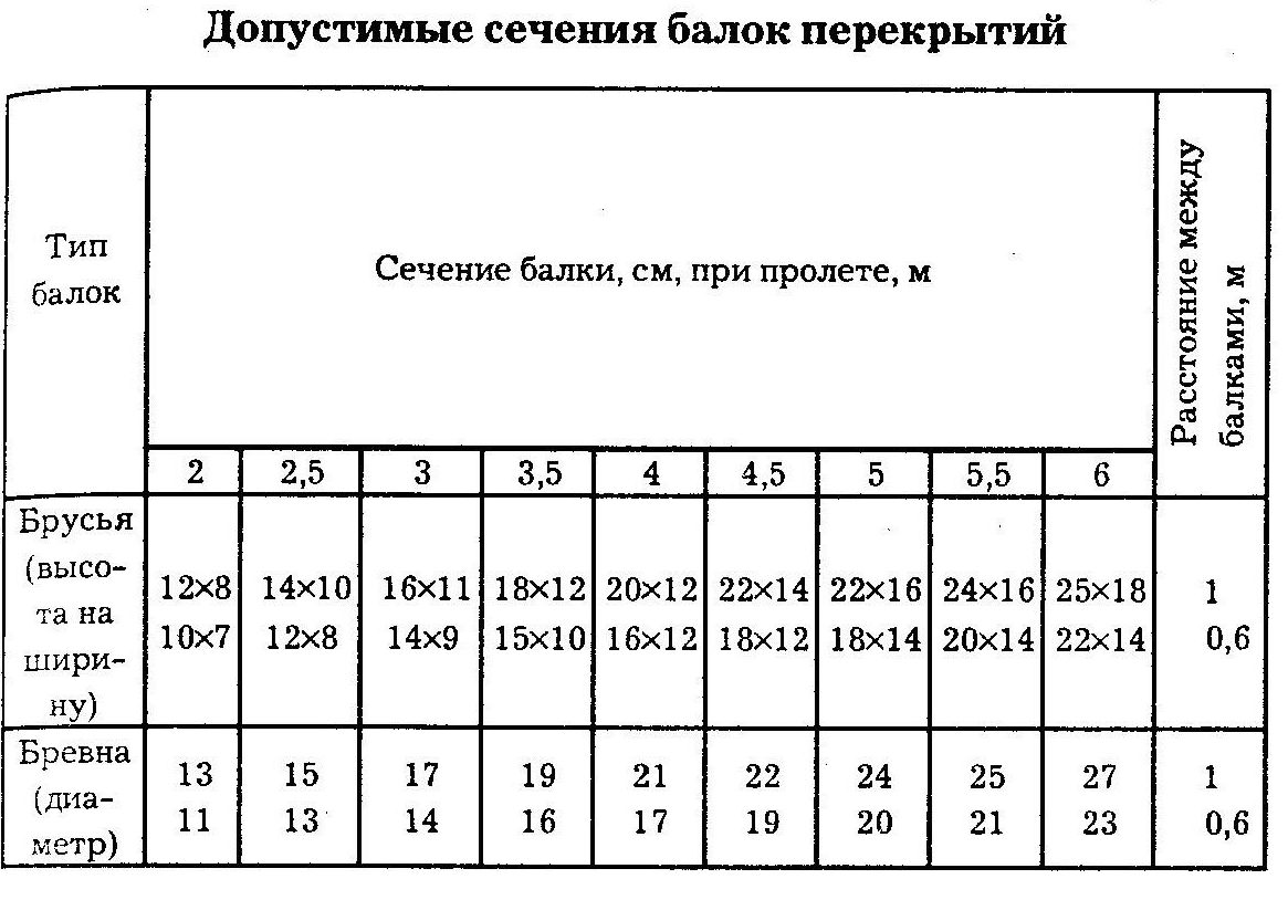 Максимальная длина деревянной балки перекрытия. Сечение деревянных балок перекрытия