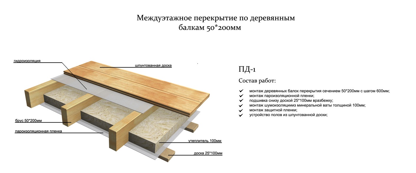 Таблица. Слои межэтажного перекрытия в деревянном доме.