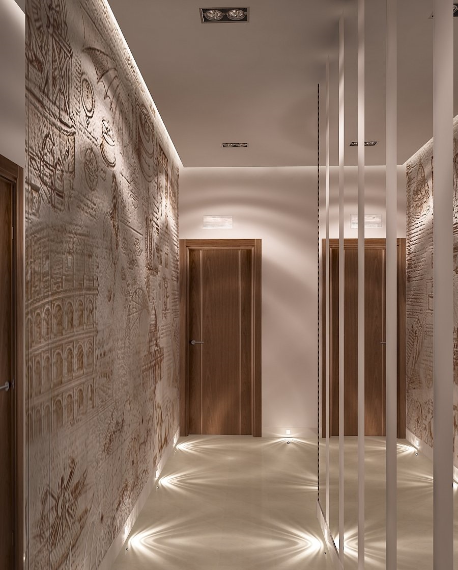 Функциональная нагрузка коридора не идет ни в какое сравнение с его площадью. Прихожая – это не только «промежуточная комната» «из гостиной на кухни», но и место, где раздеваются, придя домой с улицы, вешают куртки или пальто, хранят верхнюю одежду и обувь, ключи, зонты, почта, средства по уходу за обувью…. А что еще главнее – встречают и провожают гостей. Поэтому помещение должно быть не только функциональным, но эстетичным.