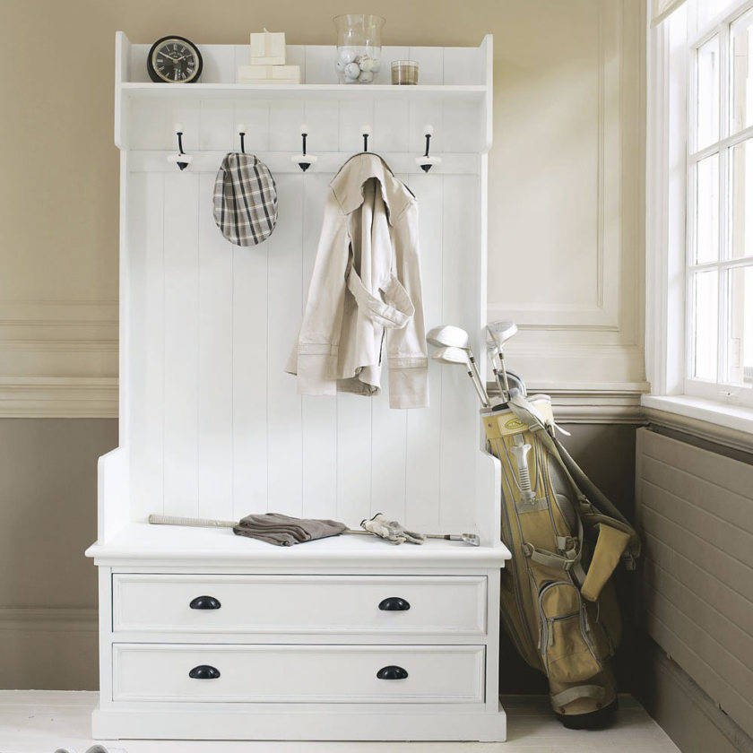 - Вешалка. Этот вариант больше всего подойдет для прихожей, где площади категорически мало. По сути, самая простая вешалка представляет собой набор крючков с полкой для шапок, иногда на заводских комплектах присутствует горизонтальная штанга, чтобы вешать плечики. А вообще заводской вариант вешалки-стойки для прихожей как нельзя лучше подходит для обустройства небольшой площади. Здесь и дизайн можно выбрать подходящий, и расцветку, и конфигурацию так, что в любом частном случае решение будет найдено.