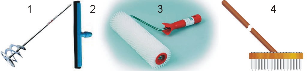 Как замену валику на малых площадях мастера-самодельщики успешно используют самоделку, в просторечии именуемую протычкой или дырявкой (поз. 4 на рисунке). Как устроена – понятно: дощечка, гвозди, палка. Шлеп, шлеп, шлеп – и готово.