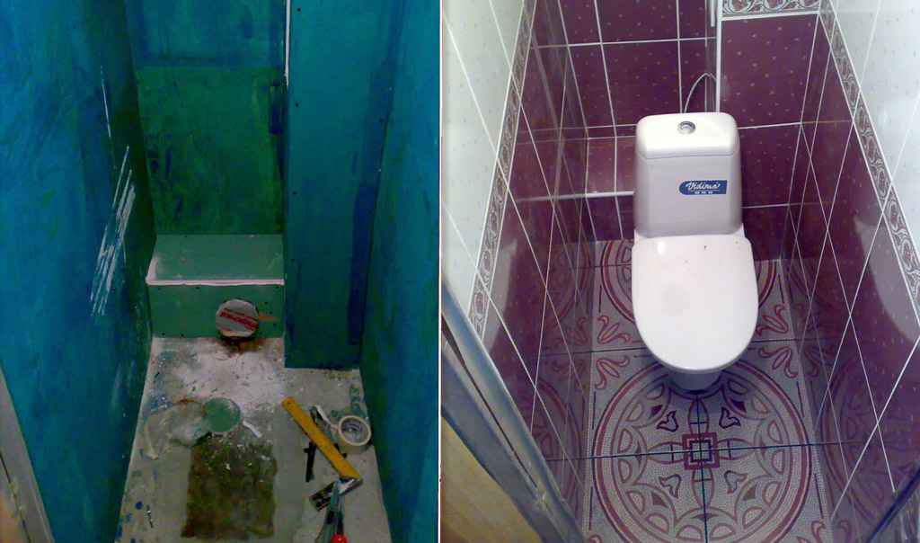 Туалет ДО и ПОСЛЕ косметического ремонта без замены коммуникаций