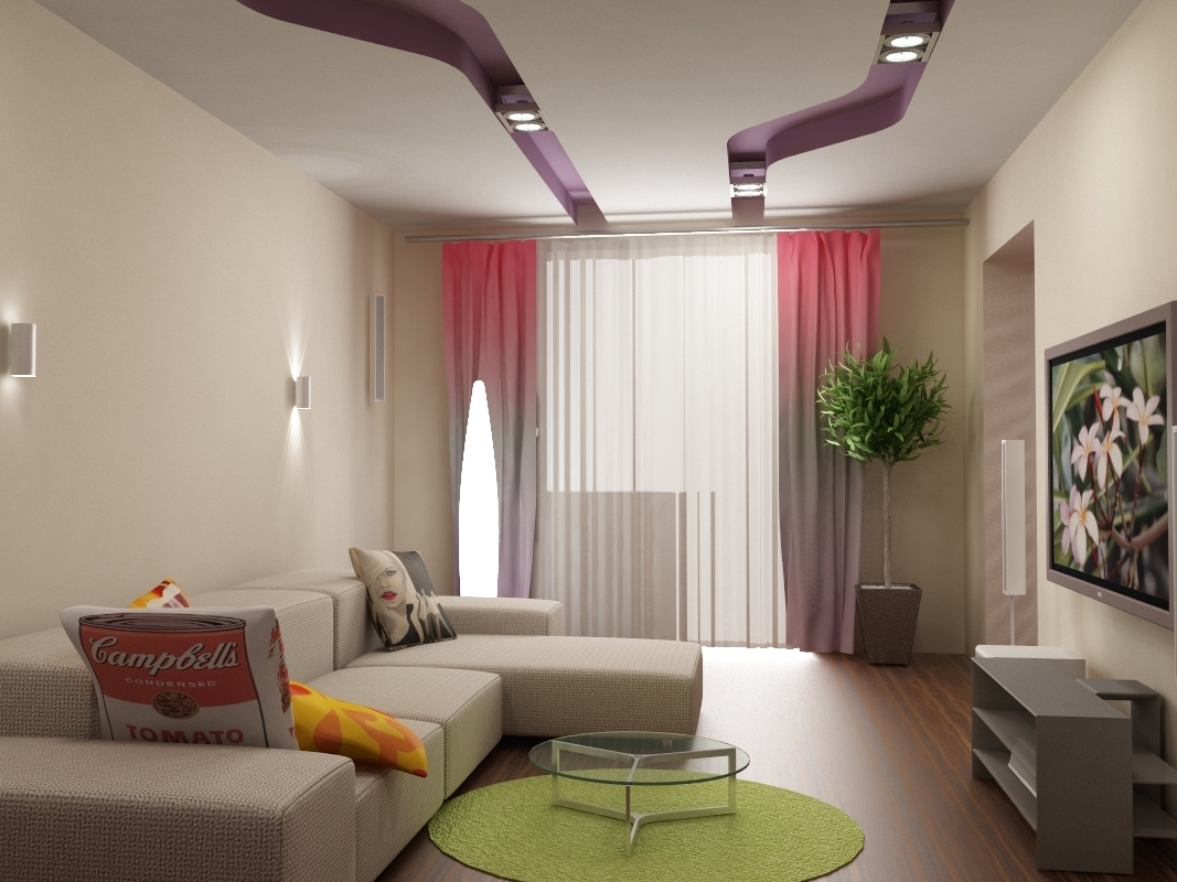 Правильное освещение зала в хрущевке позволяет компенсировать недостаточное количество природного света в вечернее время. Но это далеко не единственное предназначение осветительных приборов. С их помощью можно выполнить удачное зонирование пространства зала, сделать акцент, или, наоборот, завуалировать некоторые огрехи планировки комнаты, создать оригинальный дизайн помещения. Для зала 12 кв м двух комнатной квартиры в хрущевке актуальны идеи касательно освещения, каждая из которых имеет достоинства и недостатки.