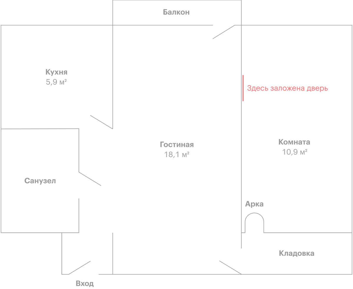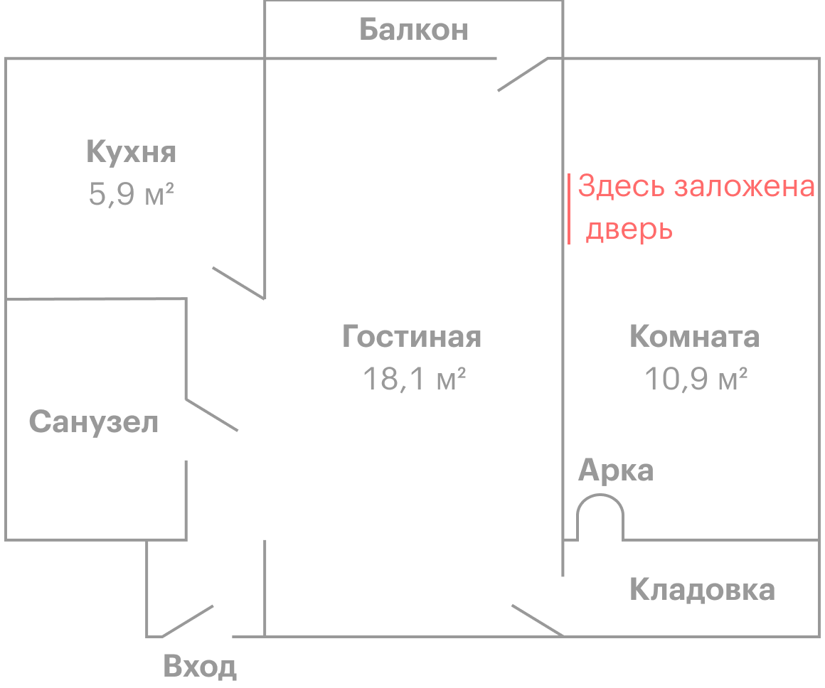 План квартиры. Вторую дверь в маленькую комнату заложили — это сделали еще бабушка и дедушка Арсения