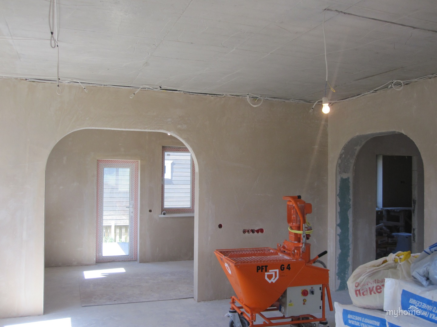 Последний этап подготовки технически прост, но требует больших физических затрат, одни мешки со штукатурными смесями сколько весят. Чтобы черновая подготовка шла быстрее, заручитесь помощью напарника. Вам предстоит выровнять полы для нового покрытия, заштукатурить стены (или выровнять их гипсокартоном) и потолки.
