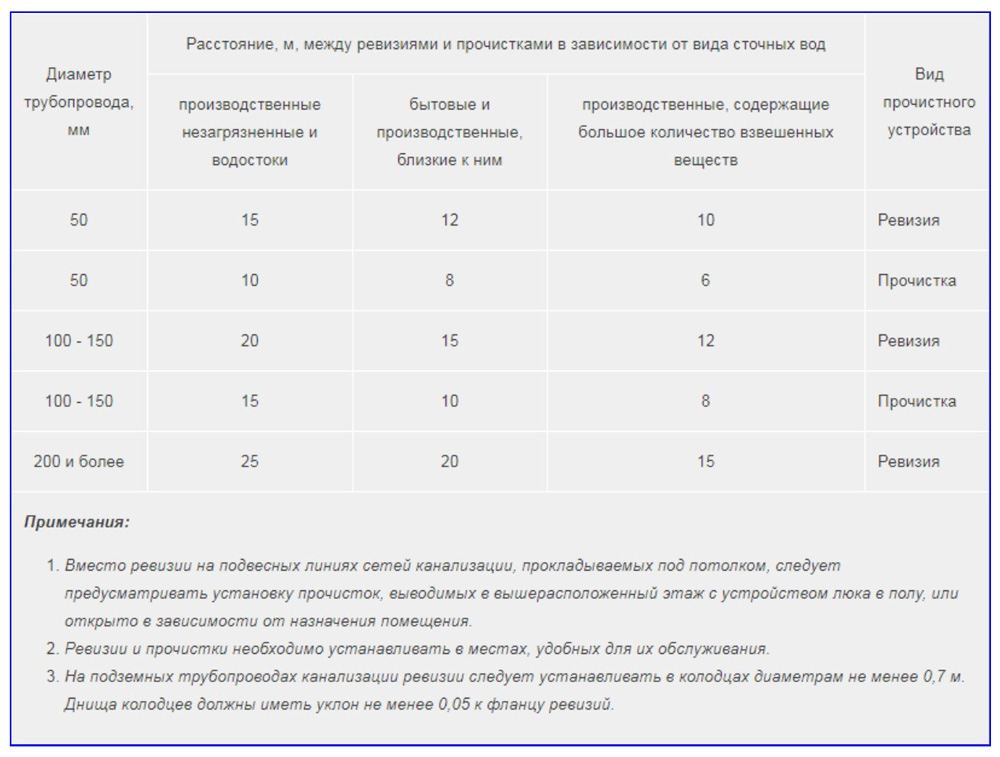 Рис. 3 Нормы максимальных расстояний между ревизионными и прочистными узлами по СНиП 2.04.01-85