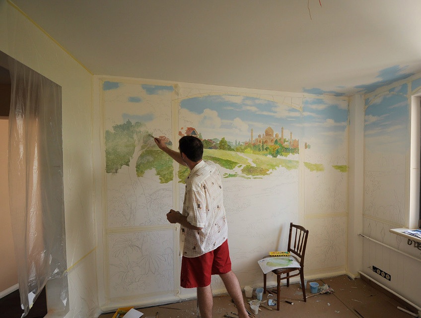 В комнатах, где вы проводите большую часть времени, не стоит делать яркую, кричащую роспись. Через некоторое время вы начнете уставать от визуального шума. По той же не стоит расписывать больше 2 стен в одной комнате. Художественная роспись — интересный дизайнерский прием, но не стоит им злоупотреблять.