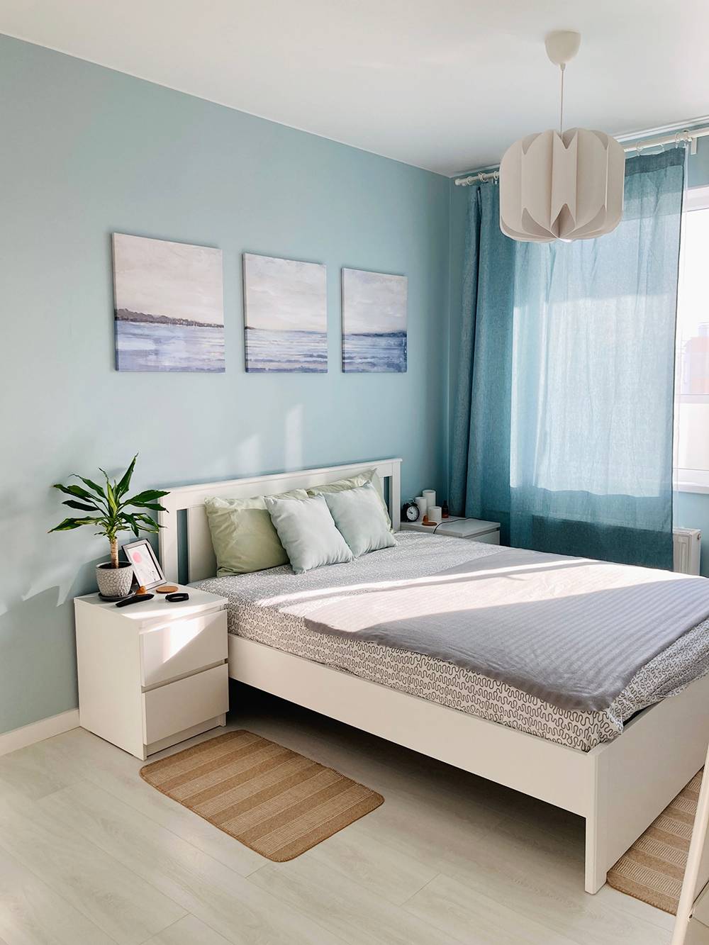 Особое внимание я уделил дальней стене в спальне. Из ее длины я вычел толщину плинтусов и в оставшееся расстояние идеально уместил шкаф, стол и стеллаж