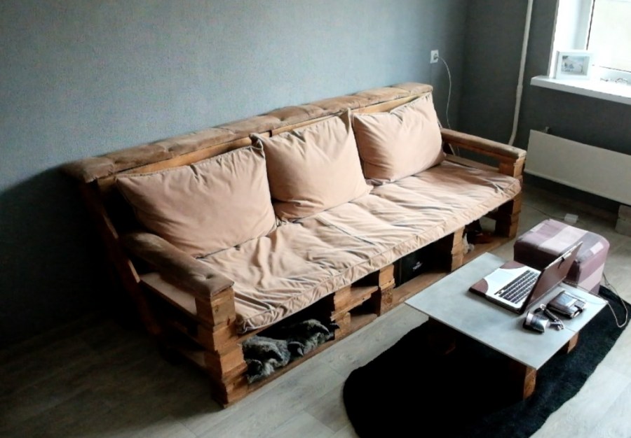 Если мебель из деревянных поддонов будет стоять на улице, она не должна «бояться» влаги, ветра, низких температур и жары. Изделия, которые должны быть в доме, украшают текстилем, подушками. Сиденья диванов и кресел могут быть с обивкой из поролона, обивкой из кожзаменителя или на коврике. Съемные чехлы удобны. Они сшиты из легкой для стирки ткани, чтобы гармонировать с другой мебелью, доступной в доме.