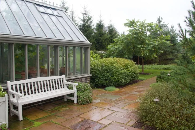 Искусство ландшафтного дизайнера состоит в том, чтобы объединить зоны сада в единое целое, и при этом каждая из них будет самостоятельной. Отделить их друг от друга можно живыми изгородями, ширмами с вьющимися растениями или перголами. Теплица в ландшафтном дизайне – также возможный элемент, потому продумайте место и для нее.