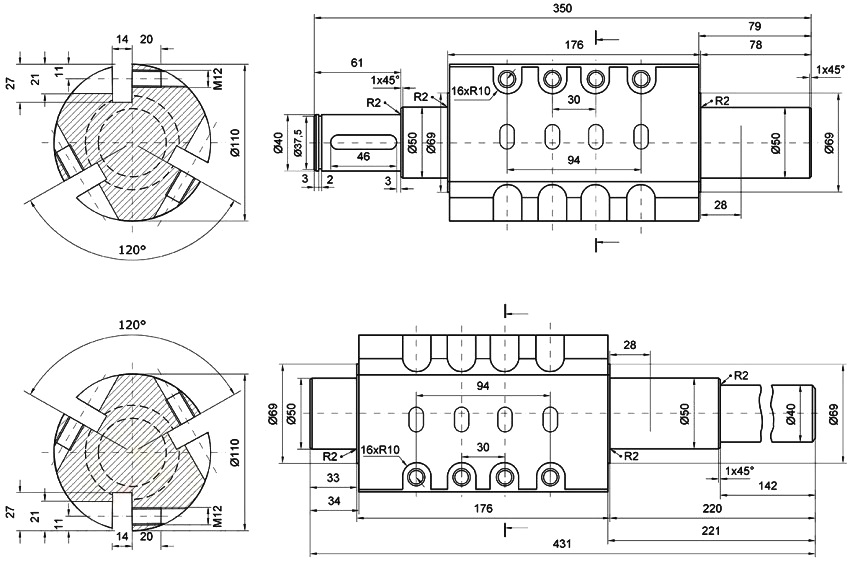 Следующим этапом является создание валов для измельчительного барабана. Если планируется установить на один вал четыре ножа, то тогда используем квадратную металлическую заготовку. Делаем оба ее конца круглой формы, чтобы они смогли войти в подшипники. Для трех ножей понадобится круглая заготовка, в которой оттачивается центральная часть. В ней делается три плоских среза для последующей установки ножей.